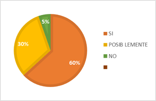 En conocimiento en la materia de transito es viable para la población encontrar una solución, tenemos el 60% y el 30% que nos dice que si están de acuerdo con encontrar una solución ideal y equitativa mediante la conciliación. El 5% es del no que la población piensa que no es un método de acuerdo adecuado.