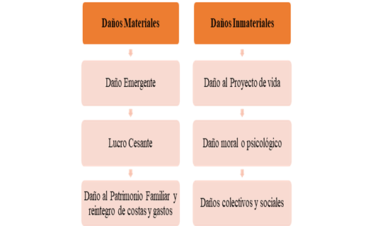 Retribución económica determinada a los daños y perjuicios, lucro cesante, daño emergente y la afectación al proyecto de vida de la víctima. |