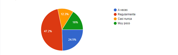 En la figura 1, se observa que el 47.2% de los encuestados indica que observa, en ese sector, la presencia de migrantes periódicamente; se destaca la importancia de abordar adecuadamente la situación de estas personas. Esto implica la necesidad de implementar políticas y programas que fomenten su inclusión, respetando sus derechos y brindándoles las oportunidades necesarias para su integración a la sociedad local.