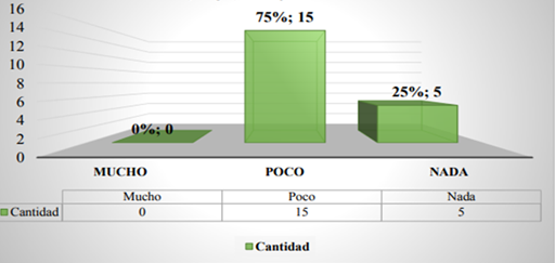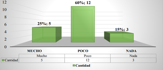 De acuerdo a 15 de los encuestados la sobrecarga procesal existente en la Unidad Judicial de la Familia, Mujer, Niñez y Adolescencia del Cantón Tulcán a afectado solamente un poco mientras que un grupo más reducido de 5 personas han manifestado que no ha afectado en nada a la respectiva Unidad Judicial. (Figura 1).