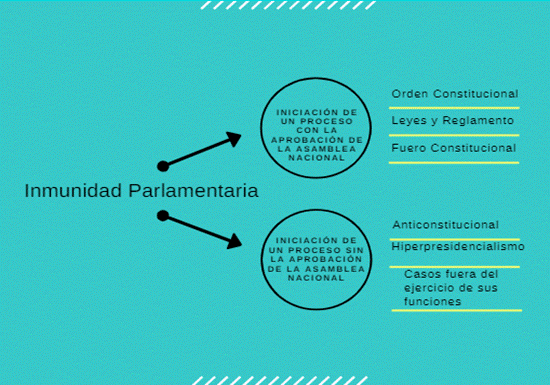 En el proceso de inmunidad parlamentaria se establecen parámetros y estructuras influenciadas por procesos, dentro de la impunidad se han implementado vicios por los cuales un legislador puede ser absuelto de uno de sus cargos, entre esos existe mecanismo que también subyace en no realizar las acciones que se consideren pertinentes para el orden legislativo. La Inmunidad hoy en día se ha convertido en un instrumento de dominación de las mayorías, es decir los grupos políticos dominantes crean principios de autodefensa, estos momentos de agitación y enfrentamiento contribuyen a la radicalización de posturas cuando existe una disyunción entre amigo y enemigo.