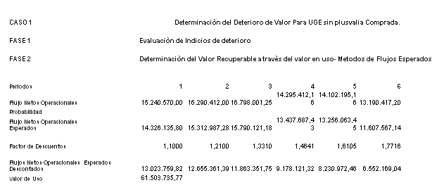 Determinación del Deterioro de Valor para la Unidad Generadora de Efectivo (UGE)
