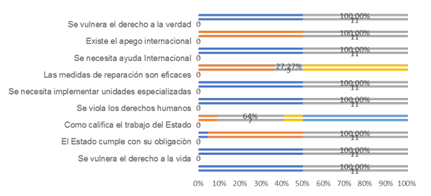 Resultados de la encuesta realizada a diferentes abogados expertos en derechos humanos y desaparición forzada de personas.