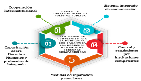 Enforced disappearance violates human rights, the State must protect because it is considered as fundamental and universal rights. Being the objective the implementation of a control protocol to give efficiency in the investigations and search for people, ideally guaranteeing the right to life, legal security, justice and knowledge of the truth. The research was non-experimental, descriptive with a bibliographic document design. It was found that there is inefficiency in processes carried out by the Ecuadorian State in these cases, which generates disagreement and social problems, which deserves an immediate solution so that the cases do not go unpunished. So the implementation of a protocol is important to improve the investigative system of justice and truth, guaranteeing life and freedom according to art. 45, 66, and 89 Constitution of the Republic of Ecuador
