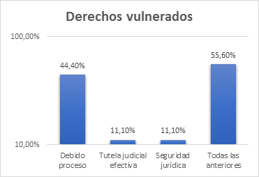 Figura 2. Derechos vulnerados por la actuación del Consorcio de Justicia Indígena y Campesina de San Pedro de Cañar. Fuente. Encuestas realizadas a profesionales del derecho.