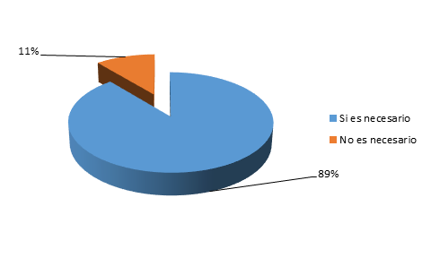El medio para resolver la problemática a la vulneración de la garantía de motivación en las acciones de protección se sustenta en la posibilidad de requerir del Consejo de la Judicatura la creación de Unidades Judiciales especializadas en justicia constitucional con jueces constitucionales que tengan una especialidad técnica y jurídica para administrar justicia constitucional, motivando sus resoluciones inspirados en el orden jurídico, los abogados encuestados en un 89% consideran que si es una necesidad la implementación de justicia constitucional especializada frente a un 11% que dijo no ser esencial (ver figura 5).