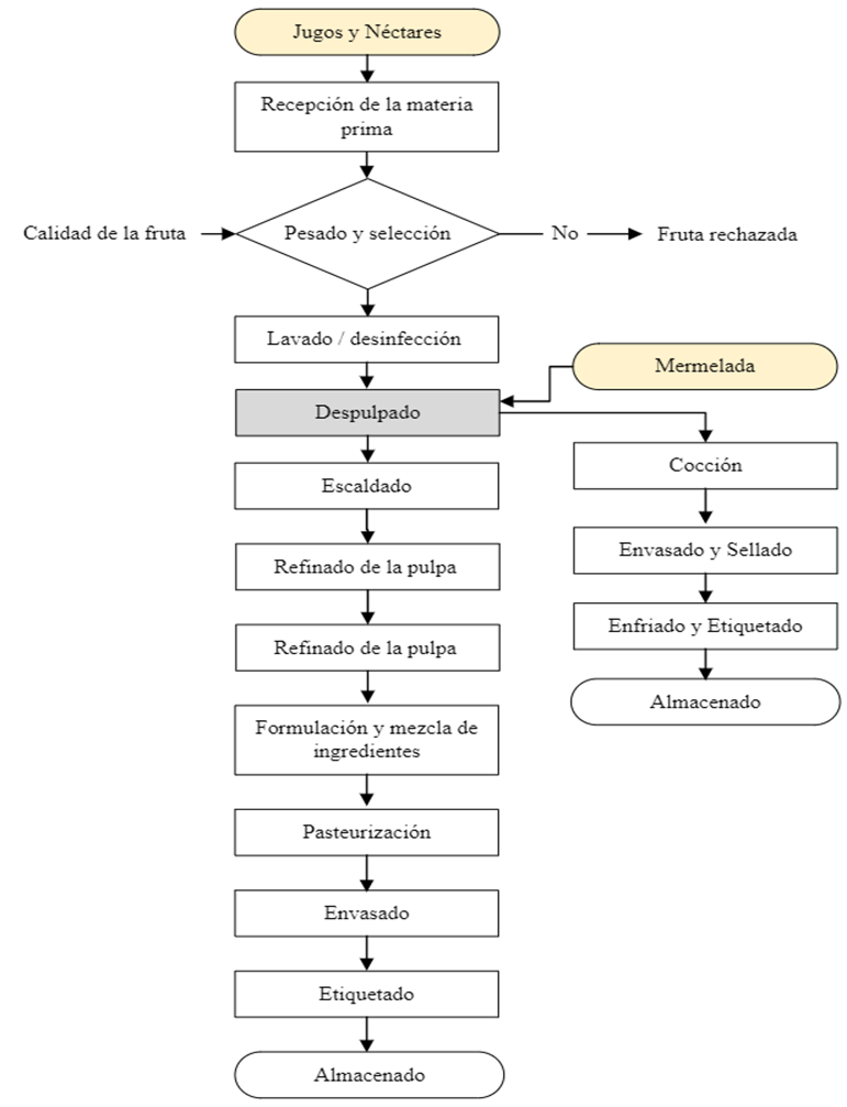 Figura 1. Diagrama de flujo de pulpa, jugos, néctares y mermeladas.