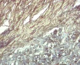 Se observó gran cantidad de fibras colágenas, distribuidas alrededor de los vasos sanguíneos, participando de su función mecánica (Figura 7).