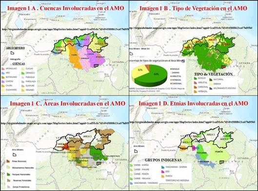 Definición Particular del Área Comprometida: Zona de exploración y explotación minera creada por Decreto “Arco Minero del Orinoco” (AMO), con el objetivo prioritario de crear los estímulos necesarios para incrementar las capacidades de aprovechamiento de las potencialidades de los recursos minerales, en sintonía con las metas establecidas en el Plan de Desarrollo Económico y Social de la Nación. Constituidas por las Siguientes áreas (Ver tabla 1, Figura 1).