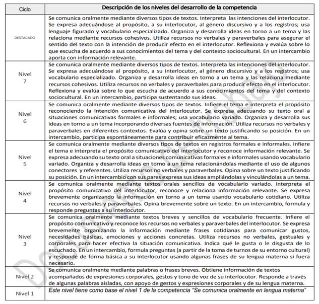 Figura 2. Estándares de aprendizaje de la competencia se comunica oralmente.