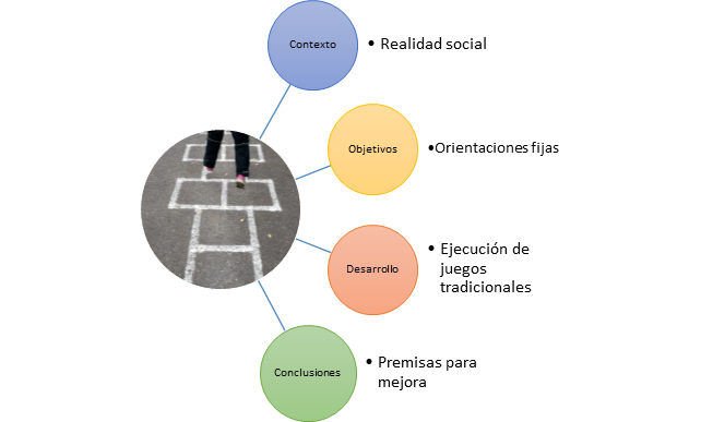Objetivos: El establecimiento de objetivos claros en los juegos tradicionales a emplear será fundamental para la consecución de los resultados esperados, el norte al que apunta la realización de todas las actividades son precisamente los objetivos y es a los que se deben responder, el contar y proponer objetivos claros generará un ambiente adecuado para que los niños establezcan estrategias para cumplir los mismos.