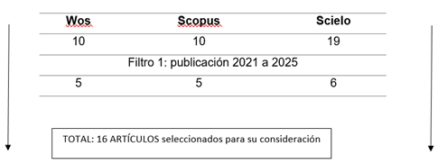Durante el primer momento de indagación, se encontraron 39 estudios, se continuó aplicando la misma metodología, con la finalidad de verificar y actualizar los resultados. En la siguiente exploración, se delimitaron los estudios publicados desde el año 2021 hasta el transcurso del año 2025, direccionados a la recolección de experiencias del AI y a la Identidad cultural.