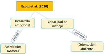 Espoz et al. (2020), por su parte, expresan que el desarrollo de las habilidades emocionales se puede lograr mediante actividades motoras; sin embargo, su capacidad para manejarlas depende de la orientación de los docentes para sobrellevarlas de forma adecuada (Figura 3).