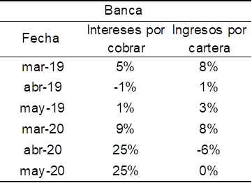 Además, al comparar las tasas de crecimiento mensual de los dos índices, intereses por cobrar y rendimiento de la cartera, en la figura 4 se observa que las cuentas por cobrar aumentaron mes a mes, mientras que, el rendimiento de la cartera disminuyó, debido a una ineficiente recuperación de cartera y a un impacto más débil de los ingresos (Red de Instituciones Financieras de Desarrollo y Equifax, 2020).