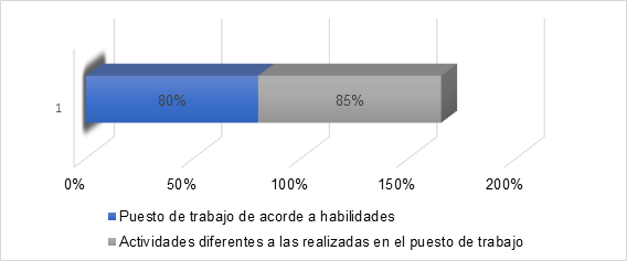 Con relación a la variable habilidades reflejada en la figura 7 se puede ver que se encuentra en un nivel de éxito, la mayoría de los trabajadores han indicado que las labores que realizan en la empresa va de acorde con sus habilidades y es por eso que no desean realizar actividades diferentes a las que ya tienen, esto significa que la variable analizada está influyendo de manera positiva con la productividad laboral, según lo que menciona (Puyana, 2015), si el puesto de trabajo va de acorde a las habilidades y competencia de una persona, las labores realizadas serán hechas con niveles altos de calidad y productividad.