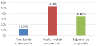 La comprensión respecto a la normativa que expresa al régimen impositivo el 11.76% de los encuestados consideran tener alto nivel de conocimientos en los temas en Medio nivel de comprensión el 52.94% y Bajo nivel de comprensión el 35.29%.