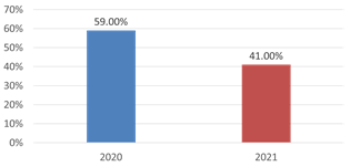 Los encuestados expresaron que en el año 2020 el 58.82% generó el mayor valor a pagar en impuestos en su empresa Mientras que el 41.18% de los encuestados expresó que pagó la mayor cantidad de impuestos en el 2021.