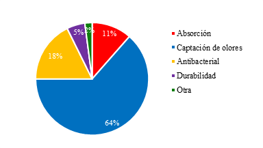 A partir del gráfico 3, se puede identificar que la característica más importante según el 64% de los encuestados de la arena para gatos es la captación de olores se observa también que la inhibición del crecimiento de bacterias y la capacidad de absorción son características con menor impacto en los clientes con un 18 y 11% respectivamente; para un 5% de los encuestados la durabilidad del producto es lo primordial mientras que un 2% consideran características de otro tipo.