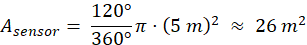 Los sensores de presencia LD2410C tienen un alcance cercano a 5–6 m y un ángulo de detección de 120°. Su área efectiva se modeló como un sector circular: