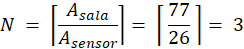 Con estos valores, la cantidad mínima de sensores necesarios es: