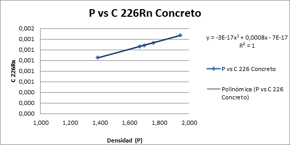 Gráfico 4. Actividad del contenido de radio 226Ra de acuerdo a su Densidad para el concreto.