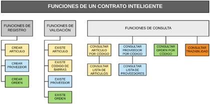 El objetivo es analizar la trazabilidad de un artículo dentro de la cadena de suministro, de manera que se pueda seguir los distintos procesos existentes entre los diferentes participantes, para lo cual se ha planteado los siguientes requerimientos funcionales que debe cumplir el contrato inteligente: