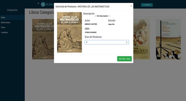 En la figura 5 se muestra la solicitud de un préstamo de libro: