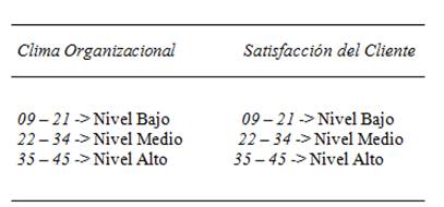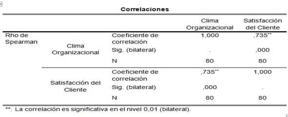 Tabla 13. Correlación clima organizacional y satisfacción del cliente