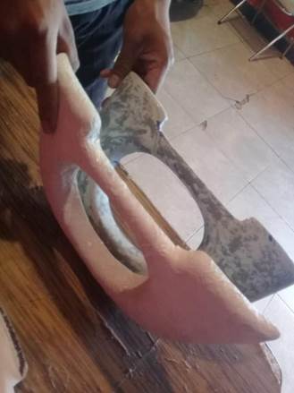 dos retazos de madera y pinzas mecánicas, hasta lograr la eliminación de los