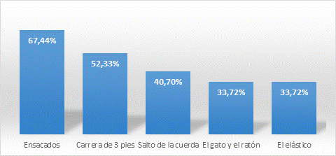 Se ha documentado con claridad y precisión los nombres, cantidad, preferencia y capacidad relacionada en torno a los juegos tradicionales, logrando de este modo establecer una tendencia de juegos que funcionan de manera exitosa en el desarrollo de las capacidades coordinativas, objeto de esta investigación.