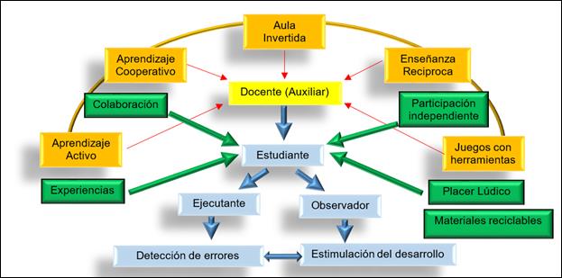 En la misma línea (Urgilés-Campos, 2014), menciona que en este aprendizaje el rol que toman los niños en el momento de realizar una actividad es muy importante y el docente solo se encargara de planificar y asignar la tarea, de esta manera mientras un niño se encarga de la parte ejecutiva el otro se encargara de la parte observacional, siendo el segundo el encargado de detectar errores o fallos, encontrando y aportando soluciones a la tarea asignada, con lo cual los niños se apropian de las experiencias propias y de las de su compañero, por lo cual este estilo de enseñanza permite y otorga más participación al niños en el proceso enseñanza aprendizaje.
