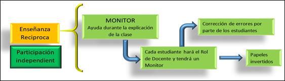 Figura 2. Proceso en la distribución de roles docente-estudiante en la utilización la enseñanza recíproca.