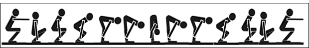 La posición de flexión de piernas con los brazos extendidos hacia delante y realizando una extensión de piernas.