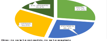 También se observa un importante dato con respecto a la burocracia institucional que dilata los procedimientos en perjuicio de los usuarios de las financieras, ya que dé los créditos financieros solicitados por las empresas un 16,4% se encuentra en trámite. De las solicitudes de financiamiento un 27,3% de las empresas realizaron negociaciones con las entidades de crédito en las mismas condiciones de años anteriores, mientras que el 26,4% de empresa realizaron negociaciones en situaciones inferiores. De los datos de la encuentra un alto porcentaje de empresas 30% ha presentado inconvenientes para acceder al financiamiento. (Figura 17).