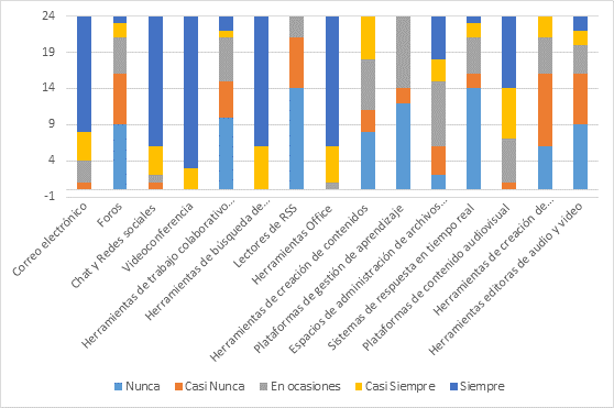 A través de los resultados obtenidos en la encuesta se puede mencionar que al menos la mitad de los docentes que participaron en esta investigación manifiestan que no tuvieron una formación pedagógica con la capacitación adecuada para usar y aplicar los distintos recursos tecnológicos y tampoco estaban preparados para el cambio radical de las clases presenciales a la virtualidad, sin embargo, para sobrellevar la situación se han visto en la obligación de optimizado esfuerzos por implementar distintas estrategias para dar continuidad al proceso educativo a través del uso de las distintas tecnologías emergentes con el objetivo de generar aprendizajes significativos en los estudiantes.
