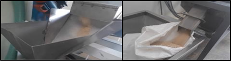 Se enciende la zaranda dosificadora y la máquina de quinua, para dar inicio a la escarificación de la quinua a continuación se muestran las imágenes del ingreso y salida de la Quinua.