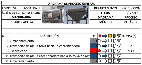 Resumen del diagrama de proceso, método maquina escarificadora.
