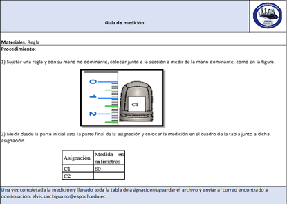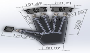 Adquisición de medidas antropométricas de la mano, la biometría conforma diferentes rasgos fisiológicos que diferencian a un ser humano de otro en este caso todo lo que engloba a la geometría de la mano ya sea en medidas y características. Conocer un promedio en medidas geométricas de la mano es sustancial debido a que nos permitirá establecer ciertos parámetros previo al diseño. Para el diseño del sistema electromecánico se realizó una base de datos donde se obtenga las medidas de las manos y dedos, con esto se logrará establecer un rango de movimientos para la funcionalidad del sistema.