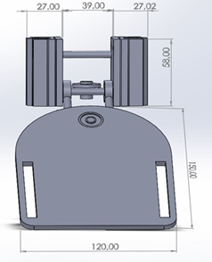 Para la rehabilitación se necesitará una estructura que permita moverse conjunto con la mano de manera libre por tal razón se diseñó una placa que será ajustada posteriormente y tienen a su vez bastante amplitud de movimiento.