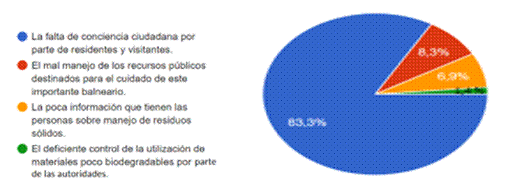 (1) La falta de conciencia ciudadana por parte de residentes y visitantes. (2) el mal manejo de los recursos públicos destinados para el cuidado de este importante balneario. (3) la poca información que tienen las personas sobre manejo de residuos sólidos. (4) el deficiente control de la utilización de materiales poco biodegradables por parte de las autoridades.
