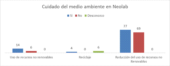 Según (Instituto Ethos de Empresas y Responsabilidad Social, 2010), el cuidado al medio ambiente es de suma relevancia, en las empresas que aplican normas de RSE. Tomando en cuenta que sin el cuidado a los ecosistemas ninguna empresa podrá perdurar y trascender en el tiempo. Neolab debería implementar una política dentro de su flota vehicular, la cual la integren vehículos híbridos o motocicletas eléctricas para la recolección y traslados de muestras. También se debe trabajar en campañas que integren la figura 2 de este dos de este documento, como reducir el consumo de energía eléctrica y pensar en políticas a largo plazo que utilicen paneles solares.