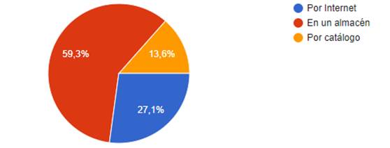 El 59,3% de clientes de lanas e hilos hacen sus compras en un almacén, el 27,1% por internet y el 13,6% por catálogo.