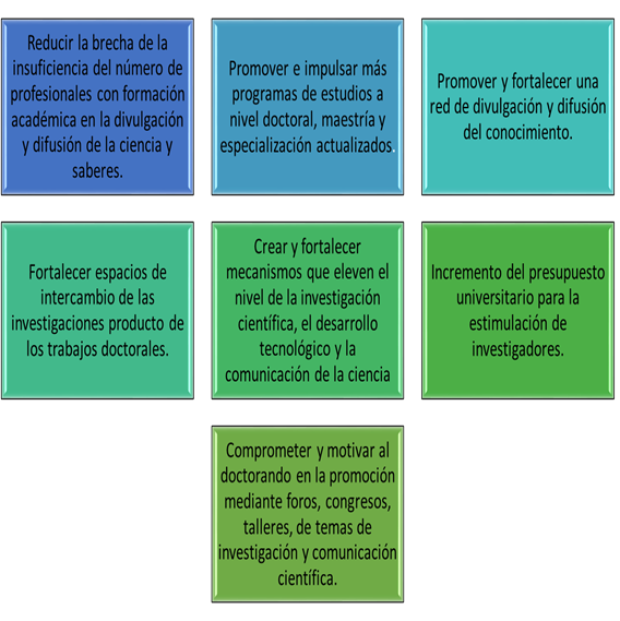 Luego de las argumentaciones presentadas, se plantea como objetivo general de la investigación describir los retos de la divulgación y difusión del conocimiento científico desde la formación doctoral.