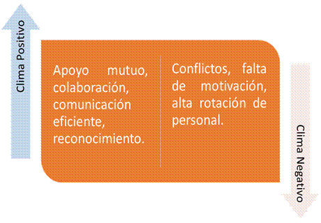 En general término clima laboral, hace referencia a la atmósfera emocional y relacional que los empleados perciben en su entorno de trabajo, lo cual afecta sus actitudes, comportamientos y niveles de satisfacción. Un clima laboral positivo se caracteriza por promover la colaboración, el apoyo mutuo, una comunicación efectiva y el reconocimiento del esfuerzo. Por otro lado, un clima laboral negativo está asociado con conflictos, falta de motivación y una alta tasa de rotación de personal.