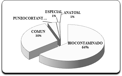 Figura 1. Porcentajes de residuos hospitalarios según tipo.