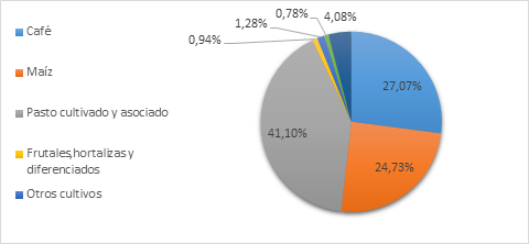 Según Santistevan Méndez et al. (2014) Jipijapa cuenta con un 38.6 % del área sembrada con café. De acuerdo con el Censo Agropecuario Nacional y al uso del suelo, en Jipijapa existen 8.491 UPA y una superficie agropecuaria de 90,129 hectáreas. En la zona alta, de acuerdo con los datos estadísticos del MAG el cultivo predominante es el café, cultivado en grandes extensiones como monocultivo (13.297,54 ha del total de 49.116,76 ha). La zona de montaña o lluviosa (alta y media) representa el 27.07% de la superficie agrícola, con una producción de 2.600 TM y un rendimiento de 0.20 TM/ha. En la zona baja o seca del cantón predomina el cultivo de maíz (MAG, 2022).