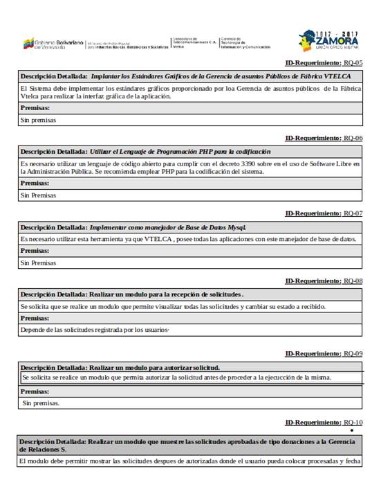 Para el diseño de las pantallas que conformaron el requerimiento solicitado, se tomó en cuenta los estándares visuales pautados por la Gerencia de Asuntos Públicos de VTELCA, en relación a la ubicación y constitución de la cabecera y pie de pagina de cada formulario y/o reportes.