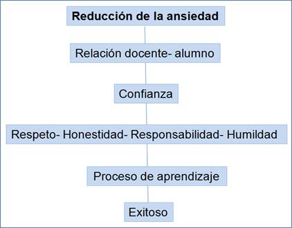 La figura 4 resume, según la opinión docente, que la ansiedad en el aprendizaje de la matemática se puede reducir cuando el docente transmite confianza al estudiante, considerando el respeto, la honestidad, la responsabilidad y la humildad. Esto, en palabras de los docentes, armoniza el proceso de aprendizaje, le da significado y lo conduce al éxito.