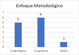 En relación al segundo objetivo específico sobre el enfoque metodológico, no existe diferencia entre estudios cuantitativos (basados en encuestas nacionales de inseguridad alimentaria) —cinco (5)— y cualitativos —seis (6)—, con solo un (1) estudio mixto.