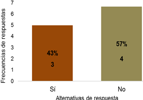 Como se puede observar en la siguiente figura, en lo que respecta a la existencia de sistemas o mecanismos de control interno que incluyan la formulación, ejecución, control, seguimiento y evaluación de los objetivos institucionales planteados, el 57% indicó que sí existen mecanismos de control interno; no obstante, el 43% señaló que no existen tales mecanismos de control, como se observa a continuación.
